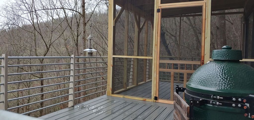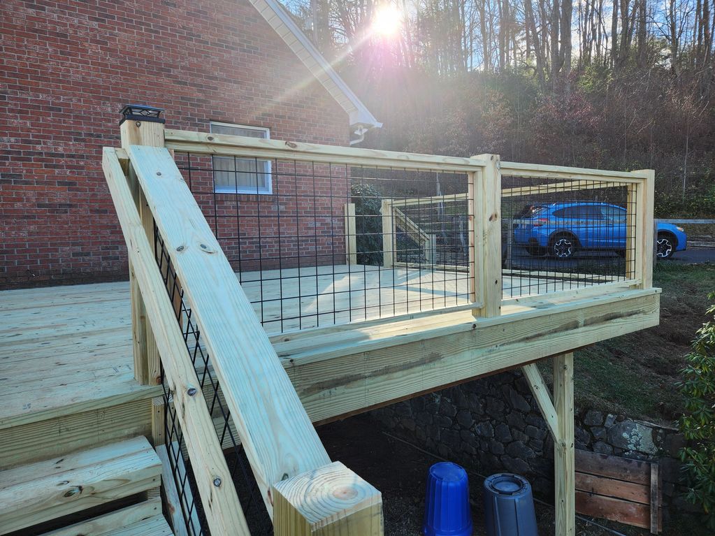 Black metal hog wire is a popular style of handrail in the Asheville area. It's around the same price range as the black metal vertical balusters and also gives a more modern appeal.